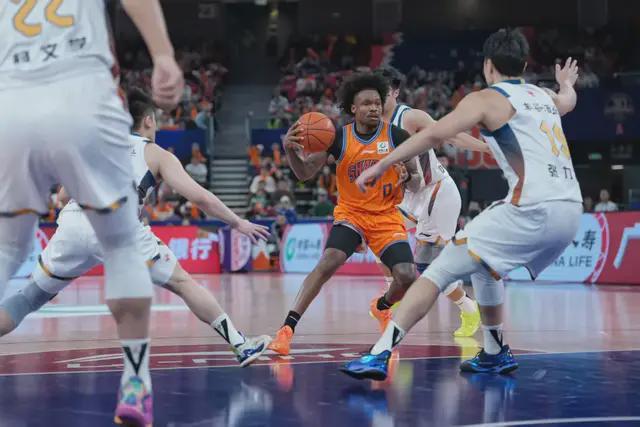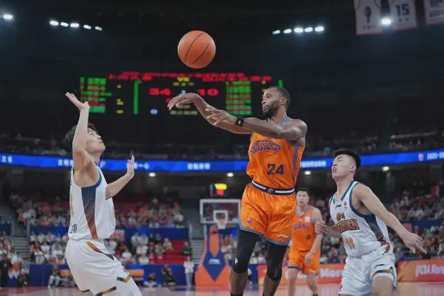 第二節(jié)上海男籃大幅輪換陣容,兩隊進攻命中率都不高,上半場比分為47:18。