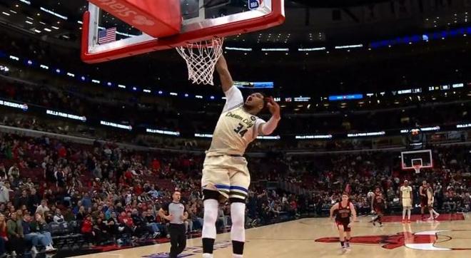 比賽進(jìn)入最后10秒,公牛落后7分已經(jīng)放棄了比賽,但是字母哥一人快攻秀了一波大風(fēng)車扣籃,