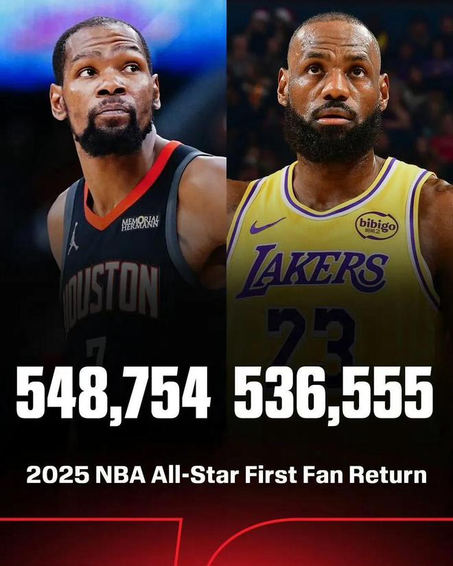 詹姆斯53萬票,西部第9, 排在了 東契奇、約基奇、庫里、文班亞馬、華子、阿夫迪亞、杜蘭特之后。