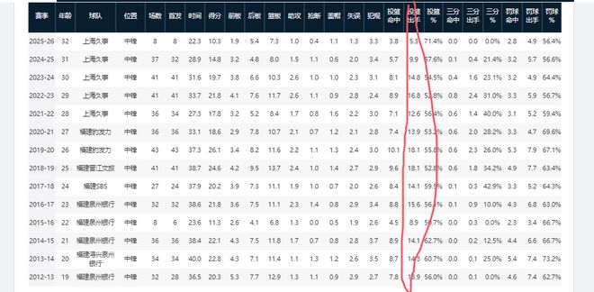 要知道,前四個賽季,王哲林場均出手最少也有9.9次,最多可達到16.8次。由此可見,他已從球隊內(nèi)線核心,逐漸變成了藍領中鋒。