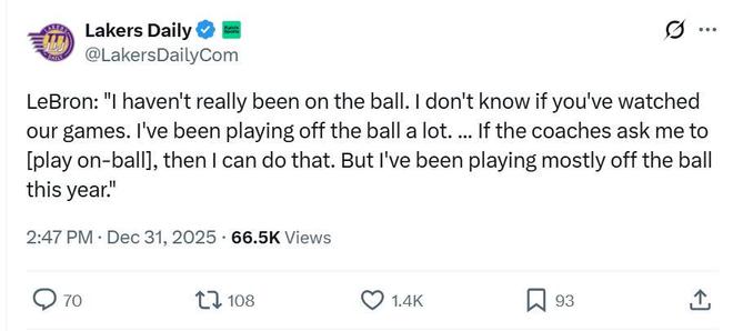 Lakers Daily寫道:“別再試圖讓詹姆斯成為追夢格林,讓他做自己,讓其他人來適應他。”