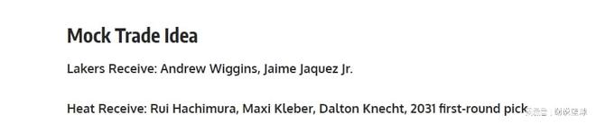 如今2026年已經(jīng)到來(lái),媒體FW也腦洞大開(kāi),支招湖人跟熱火交易。方案里紫金軍團(tuán)可以追兩鋒線悍將安德魯-維金斯和小海梅-哈克斯,而湖人送出三球員,包括八村塁、克勒貝爾和克內(nèi)克特,再加上一個(gè)來(lái)自2031年的首輪簽。
