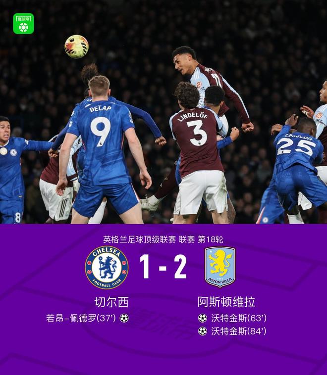 北京時間12月28日英格蘭足球頂級聯(lián)賽 聯(lián)賽 第18輪,切爾西主場對陣阿斯頓維拉。切爾西若昂-佩德羅破門。阿斯頓維拉沃特金斯梅開二度。最終比分切爾西 1-2 阿斯頓維拉。