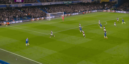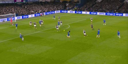 這樣一來(lái),林德勒夫的弱勢(shì)就會(huì)帶動(dòng)身前和身側(cè)的球員一起退縮,邊后衛(wèi)、邊前衛(wèi),中前衛(wèi)都要跟著塌,切爾西便很容易能通過(guò)球員壓上和無(wú)球跑動(dòng),制造出從這一側(cè)起腳傳中的空間: