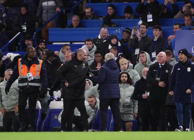 然而,當主裁判斯圖爾特?阿特韋爾吹響終場哨時,場面險些失控——一個塑料水瓶被扔向維拉替補席,濺濕了烏奈?埃梅里的替補球員和工作人員。