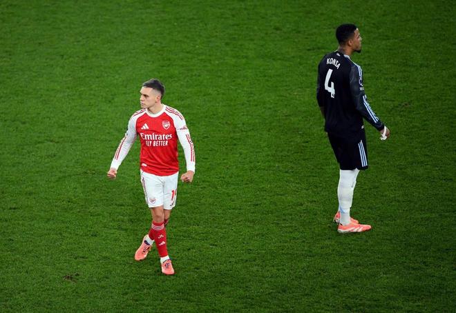 比賽進行到第48分鐘,阿森納隊角球開到禁區(qū)內,馬丁內斯摘高空球失誤,加布里埃爾為阿森納取得進球,VAR介入認定進球有效,阿森納1-0取得領先。
